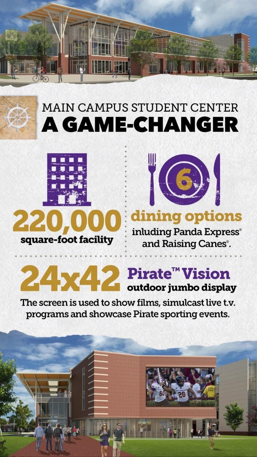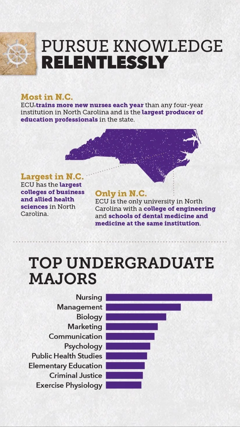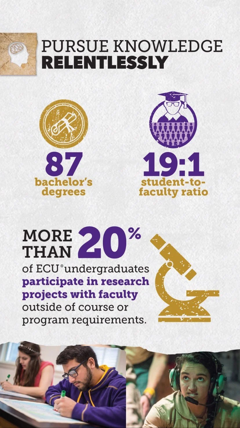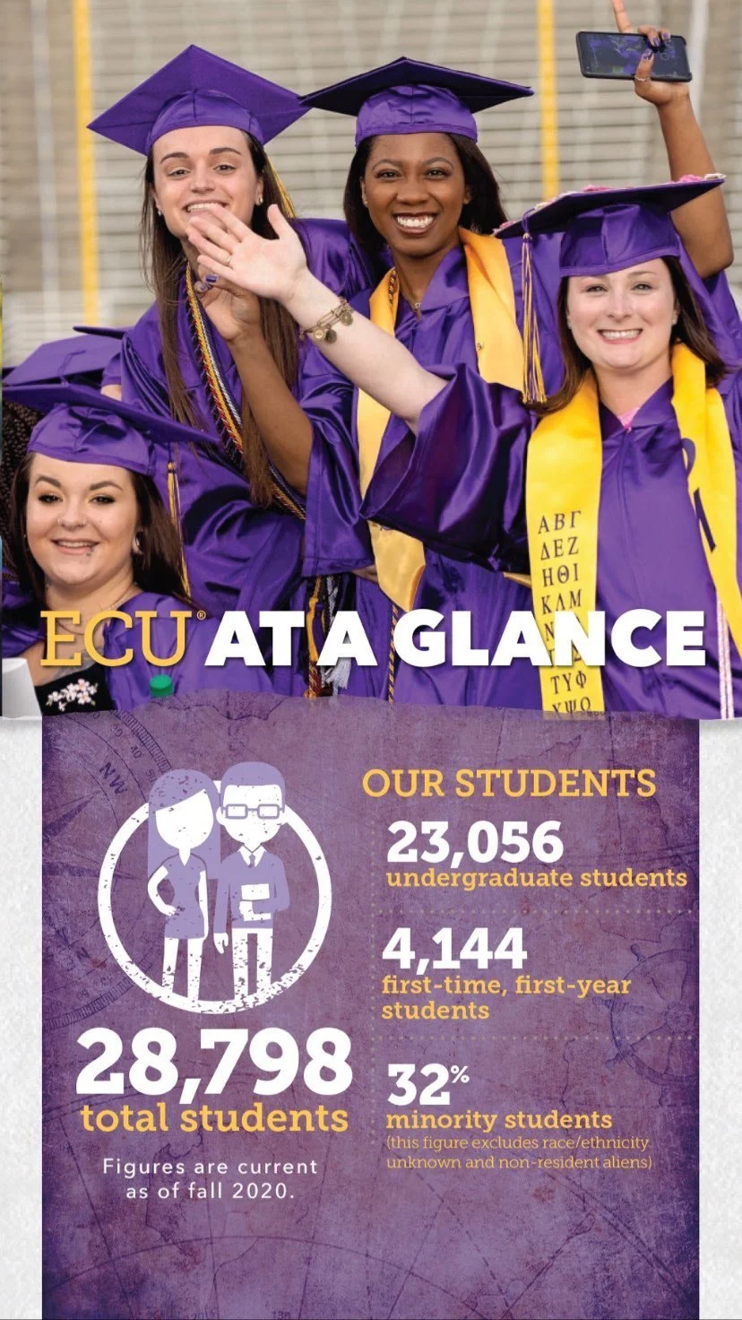With the majority of prospective students on Instagram and TikTok, presenting our admissions information on those platforms is imperative to the success of our admissions goals. With this in mind, I repurposed ECU's freshman travel book/admissions guide into Instagram stories to get important information in front of prospective students.